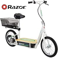 Razor EcoSmart Metro Electric Scooter For Adults - 500W High Torque Motor, Up to 18MPH, 16" Air Filled Tires, Rear Wheel Drive, Height Adjustable Seat and Detachable Luggage Basket, Bamboo Deck ,White ,50 X 13.25 X 23-Inch - 13114501 |