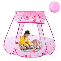 Agole Kids Tent Pink Princess Teepee Ball Pit Toddler Tent Girl Easy Pop Up Fold into a Carrying Case for Indoor Outdoor Portable Childrens Play Tents |