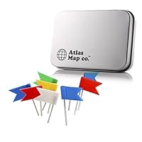 6 Flag Map Pins 60 Pack - 5 Assorted Colors (12 of Each Color - Blue, Green, White, Yellow, Red) Perfect for Maps, Cork Boards, Vision Boards, Office Bulletin Boards etc. by Atlas Map Co