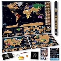 5 TR Scratch Off Map Set - Maps of World, USA & Europe with Ebook & Luggage Tag | Easy to Scratch Premium Quality Large Posters - Perfect as Gift for All Travelers | Unique Design for Decor Your Home.