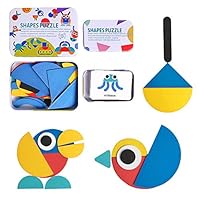 4 | Wooden Pattern Puzzle Shape Blocks Tangram Montessori Brain Teasers STEM Jigsaw Colorful 120 Patterns 60 Cards Early Learning Challenge IQ Travel Game Educational Gift for Kid Toddlers Baby by USATDD | ![]() |