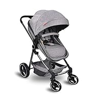 5 Cozylifeunion Baby Stroller, Convertible Bassinet Reclining Stroller, Foldable and Portable Pram Carriage Anti-Shock Pushchair with Aluminum Frame, 5-Point Harness and High Capacity Basket(Gray)