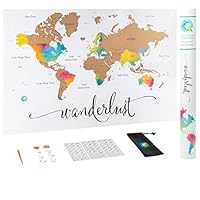 10 | Scratch Off Map of The World | Deluxe Watercolor Wanderlust Edition | XL Size 24"x 36" | Beautiful Wall Art | Perfect Travel Gift | Includes Scratch Off Tools and Memory Stickers | by Wander the World |