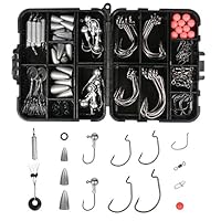 RUNCL Fishing Terminal Tackle, 148/170pcs Fishing Tackle Box - Fishing Hooks, Weights, Jig Heads, O-Rings, Barrel Swivels, Fastlock Snaps, Fishing Beads, Space Beans - Freshwater & Saltwater Fishing |
