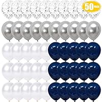 9 | Navy Blue and Silver Confetti Balloons, 50pcs 12 inch Metallic Silver and White Pearl Party Balloons for Shower Wedding Engagement Birthday Graduation Supplies by Hiquaty |