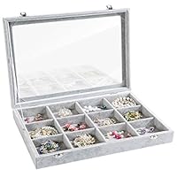 Stylifing Clear Lid Velvet 24 Grid Jewelry Tray Stackable Display Showcase Lockable Organizer Box for Girls Women ¡ |