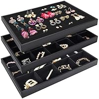 5 | Mebbay Stackable Velvet Jewelry Trays Organizer, Jewelry Storage Display Trays with Full Artificial Leather Cover for Drawer, Earring Necklace Bracelet Ring Organizer | ![]() |