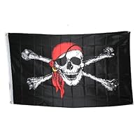 Pirate FLAG Jolly Roger Skull & Crossbones with Red Hat - 2 feet x 3 feet |