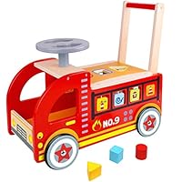 6 | Pidoko Kids Ride On Fire Truck - Wooden Push and Pull Walker Cart - Balance Wagon Toy for Toddlers Boys & Girls age 18 Months and up | ![]() |