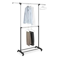 Whitmor Adjustable 2-Rod Garment Rack - Rolling Clothes Organizer - Black and Chrome |