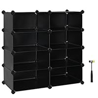 SONGMICS Cube Storage Organizer, 16-Cube Book Shelf, DIY Plastic Closet Cabinet, Modular Bookcase, Storage Shelving for Bedroom, Living Room, Office ULPC44L/44BK |