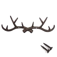 6 | Cast Iron Deer Antlers Decorative Wall Hooks | Wall Mounted Coat Hooks Rack | for Coat, Hats, Keys and More | Rustic Finish | with Screws and Anchors | by Comfify |