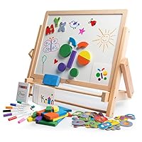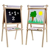 Arkmiido Kids Easel Double-Sided Whiteboard & Chalkboard Standing Easel with Bonus Magnetics, Numbers and Other Accessories for Kids and Tollders |