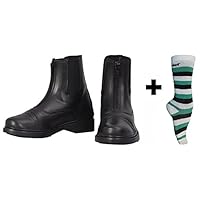 TuffRider Children's Starter Front Zip Paddock Boots with Free Assorted Striped Socks | Kids Horse Riding Equestrian Boots |