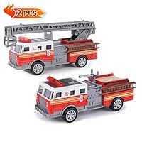 8 | Fire Trucks Toy Vehicle Set, 2 Pack 5" Metal Die-cast Engine Fire Truck with Pull Back Friction and Extending Ladder for Toddler by Think Wing |