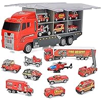 JOYIN 10 in 1 Die-cast Fire Engine Vehicle Mini Rescue Emergency Fire Truck Toy Set in Carrier Truck |