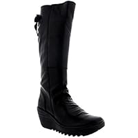 7 | FLY London Womens Yust Casual Winter Wedge Heel Leather Knee High Boots - Black - 5 | ![]() |