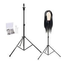 6 HYOUJIN Wig Stand Metal Adjustable Cosmetology Hairdressing Training Mannequin Head Tripod Stand for Hair Extensions Canvas Block Wig Head