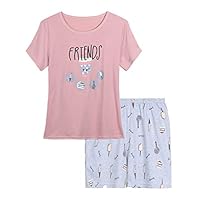 Jashe Big Girls Summer Cotton Pajamas Set Pink Bunnies Shorts Sleepwear for Teens Size 12 14 16 18 |