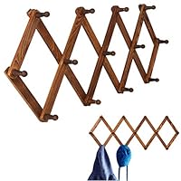 Homode Vintage Wood Expandable Peg Rack- Multi-Purpose Accordion Wall Hangers with 13 Hooks for Hats, Coat, Mugs, Scarf, Jewelry Storage |
