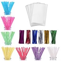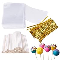 4 600ct Lollipop Cake Pop Kit Including 200 Lollipop Sticks, 200 Lollipop Bags and 200 Twist Ties, Candy Wrappers Accessories Set by Bakebaking