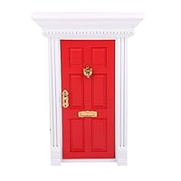 8 | 1:12 Dollhouse Miniature Luxury Wooden Red Exterior Door 6 Panel w Key by Generic |