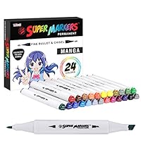 10 | 24 Color Super Markers Primary Manga Tones Dual Tip Set - Double-Ended Permanent Art Markers with Fine Bullet and Chisel Point Tips - Ergonomic Tri-Oval Barrels - Illustration, Sketch Comics, Anime by U.S. Art Supply |