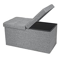 Otto & Ben 30" Storage Folding Toy Box Chest with Smart Lift Top Linen Fabric Ottomans Bench Foot Rest for Bedroom and Living Room |