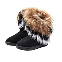 3 King Ma Women's Faux Fur Tassel Winter Snow Boot Suede Flat Ankle Boots
