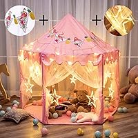 Twinkle Star 55"x 53" Princess Castle Play Tent for Girls Playhouse with 138 LED Star String Lights and Banners Decor, Kids Game House for Indoor Outdoor Game(Pink) |
