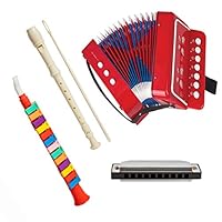 7 | Set Of 4 Combo Music Piano Horn, Soprano Descant Recorder 8-Hole, Kid's Accordion, and Harmonica by First Note USA | ![]() |