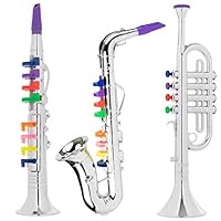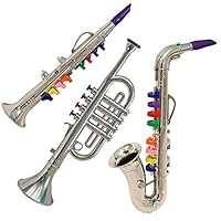 1 | Click n' Play Set of 2 Musical Wind Instruments for Kids - Metallic Silver Saxophone and Trumpet Horn | ![]() |