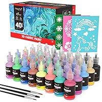 5 | Puffy Paints, Magicfly 40 Colors 3D Fabric Paint with 3 Brushes and Stencils, Permanent Textile Paint with Fluorescent, Glow in The Dark, Glitter, Metallic Colors for Clothing, T-Shirt, Glass and Wood |