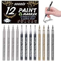 10 | Acrylic Paint Pens 12 Pack (4 Black 4 White 2 Gold 2 Silver) 0.7mm Painting Marker DIY Craft Making Supplies Used for Permanent Marking of Rock Ceramic Glass Plastic Wood Fabric Canvas Mug by soonis |