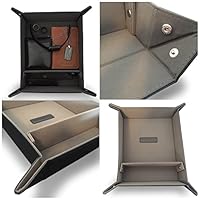 OARIE Men Valet Tray,Jewelry Key PU Leather Valet Tray Box, Fully PU Leather Storage Tray |