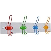 Tibres - Kids Coat Hook Rack for Boys and Girls for Jackets Clothes Hats Backpacks Robes and Towels - Kids Hanger for Use in Nursery Bedroom and Bathroom - Safe Colorful Wire Hooks and White Rail |