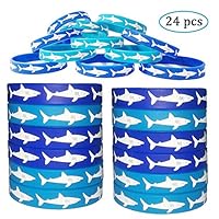 10 | Shark Rubber Bracelets - Wristbands for Shark Themed Parties, Kids' Wearables, Birthday Favors - Pack of 24 by LINDOO |