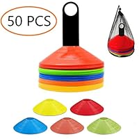 50 | 9 Inch Plastic Training Traffic Cones, Sport Cones, Agility Field Marker Cones for Soccer Basketball Football Drills Training, Outdoor Activity or Events - (Set of 10, 15 or 24, 4 Colors) by Fragraim | ![]() |
