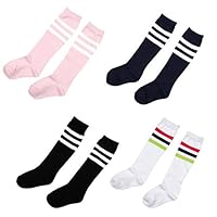 Eforstore 4 Pairs Kids Girl Cotten Bootie Knee High Long Socks for 6-7/4-5/2-3 Years Old |