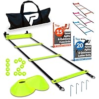 61 | INTENT SPORTS Pro 20ft Speed Agility Ladder & 10 Cones Training Set - Exercise Workout Equipment to Boost Speed, Coordination, Footwork, Explosiveness - Soccer, Football, Basketball, Lacrosse, Hockey | ![]() |