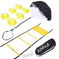 Juvale Speed and Agility Training Set - Includes Agility Ladder with Carrying Bag, 6 Disc Cones, Resistance Parachute, 4 Steel Stakes - for Speed, Coordination, Footwork, Explosiveness, Black, Yellow |