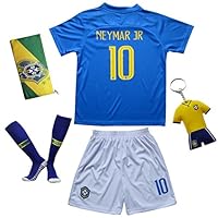 KID BOX Brazil Neymar JR #10 Away Blue Football Soccer Kids Jersey Short Socks Set Youth Sizes |